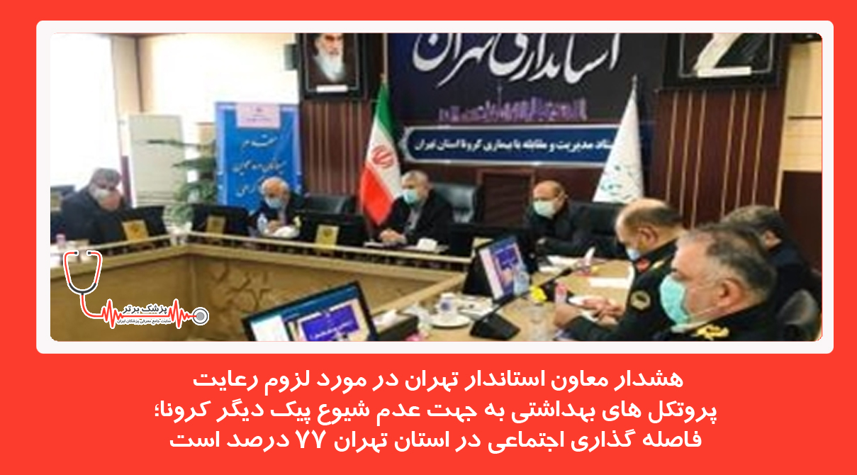 معاون سیاسی و اجتماعی استاندار تهران تصریح کرد: میزان رعایت پروتکل ها و فاصله گذاری اجتماعی در استان به ۷۷ درصد رسیده در صورتی که اثرگذاری در گرو رعایت بالای ۹۰ درصدی می باشد.