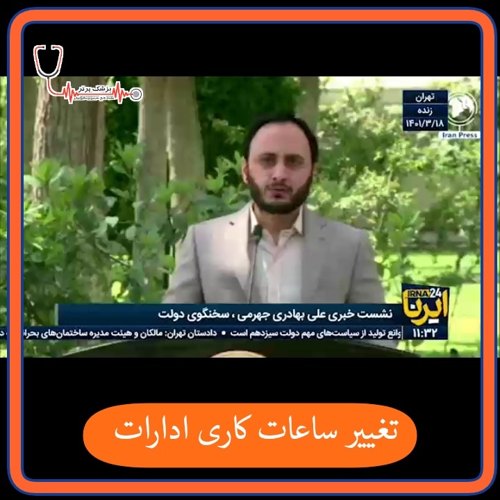 🔹سخنگوی دولت: بنا بر پیشنهاد وزارت نیرو، تغییر ساعات اداری از تاریخ ۲۱ خرداد تا ۳ شهریور از ساعت ۷ صبح تا ۱۳:۳۰ در سراسر کشور تصویب شد.